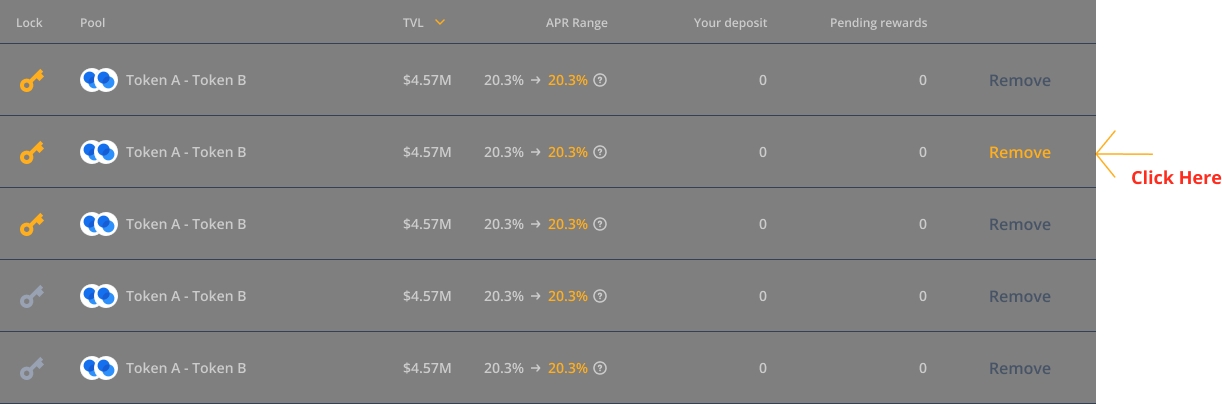In the new window, click the "Remove" button to remove/unbind liquidity: